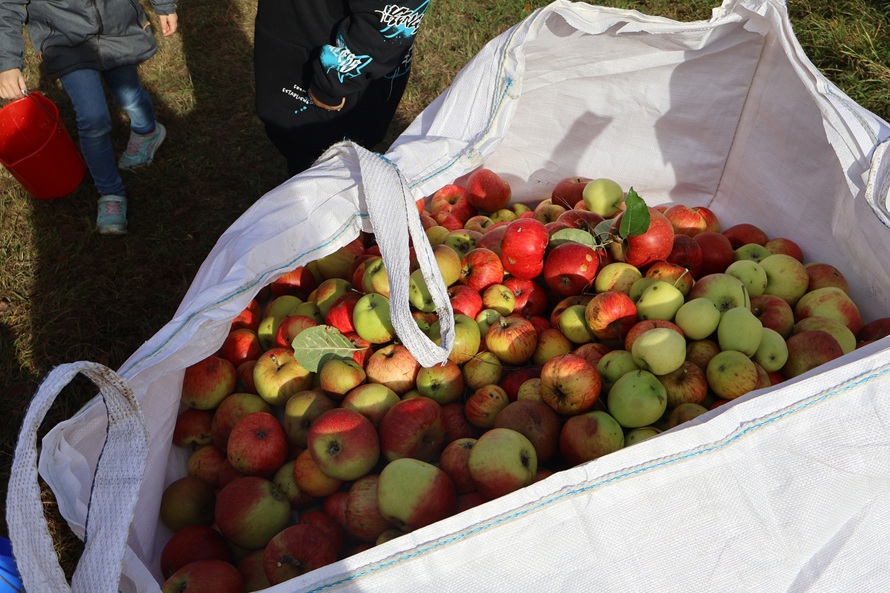 Auf die Fragen „Was wächst hier?“, „Welche Tiere leben hier?“ oder „Wie wird eigentlich Apfelsaft gemacht?“ hatten die Kinder schon einige Antworten parat, die nicht zuletzt durch spannende Fakten und Erklärungen von Rebecca Kessler (LPV) ergänzt wurden. Mit neuem Wissen und Eifer über den Lebensraum Streuobstwiese und seine vielfältigen Nutzungsmöglichkeiten konnten die Kinder einen ganzen Big Pack (circa 500kg) voll Äpfel sammeln. Diese tolle Leistung soll natürlich auch belohnt werden und die Klasse erhält die Äpfel in Form von Saft, hergestellt von der Kelterei Gerth in Reinhardshagen, zurück.