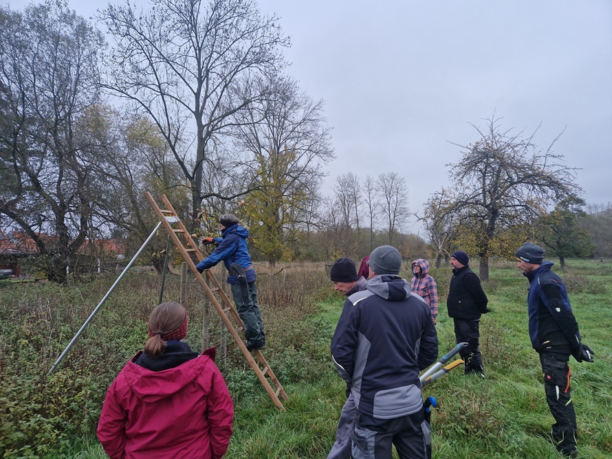 Am 08.11. und 20.11.2025 hat der Landschaftspflegeverband Landkreis Kassel e.V. zusammen mit Patricia Saif von der Obstmanufaktur aus Kaufungen einen zweitägigen Grundlagen-Schnittkurs zum Jung- und Altbaumschnitt in Eberschütz und Zwergen veranstaltet. Wir durften Mitarbeitende der Bauhöfe Trendelburg und Liebenau sowie Vertreter*innen aus Landwirtschaft, Naturschutz und Privatpersonen als Teilnehmende begrüßen.
