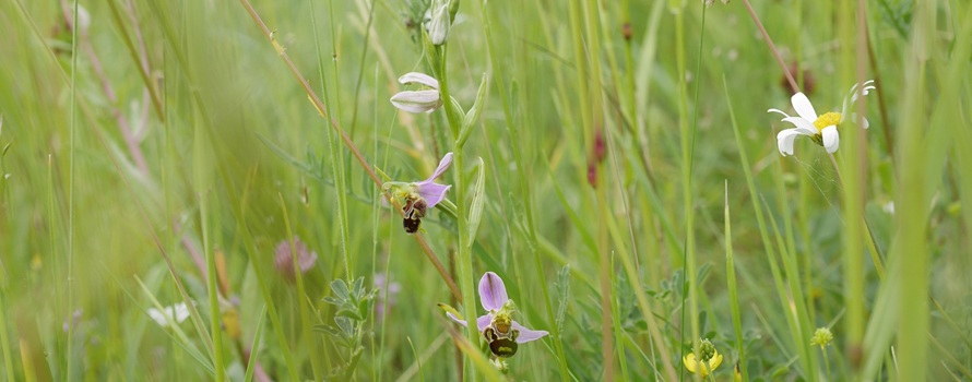 Alexander Rode weiß, dass die Grünlandfläche seit ein paar Jahrzehnten im elterlichen Betrieb extensiv bewirtschaftet wird und sich ein einzigartiger Grünlandbestand entwickelt hat. „Wir nutzen die Fläche als Kälberfutter, die freuen sich über so kräuterreiches Grünfutter. Da die Fläche in verschiedenen Agrarumweltprogrammen ist und eine Auflage die verspätete Mahd ist, wird die Fläche erst ab dem 01.07.2025 gemäht.“ Alexander Rode mäht immer nur einen Teil der Fläche und gibt diesen direkt den Kälbern. Ein weiterer Teil der Fläche wird als Altgrasstreifen nicht gemäht. „Meistens bleibt die Fläche zwischen den Hecken stehen. Dort ist der Aufwuchs nicht so dicht und Wildbienen und Falter können sich dort zurückziehen.“ Alexander Rode ist stolz auf die Vielfalt, die entstanden ist. Eine Kartierung hat ergeben, dass mittlerweile 49 Pflanzenarten auf der Fläche vorkommen, darunter viele selten gewordene Arten, wie Orchideen und der Kreuzenzian. „Im oberen Hangbereich ist alles sehr trocken und mager. Im unteren Teil blüht im Sommer vor allem die Wiesen-Margarite.“ Alexander möchte die Bewirtschaftung gerne so fortsetzen und plant den Betrieb seiner Eltern weiterzuführen, wenn diese einmal abgeben möchten.